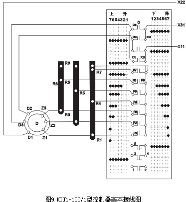 当控制器工作于线路图第一位置时,电动机的定子绕组接入网络,此时转子回路中带有全部起动电阻,在以下各级顺次将各级起动电阻短接。